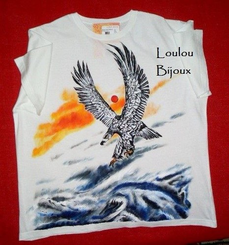 Para não pensarem que só pinto gatos.... T-shirt águia Pesqueira. Motivo inspirado numa pintura japonesa.